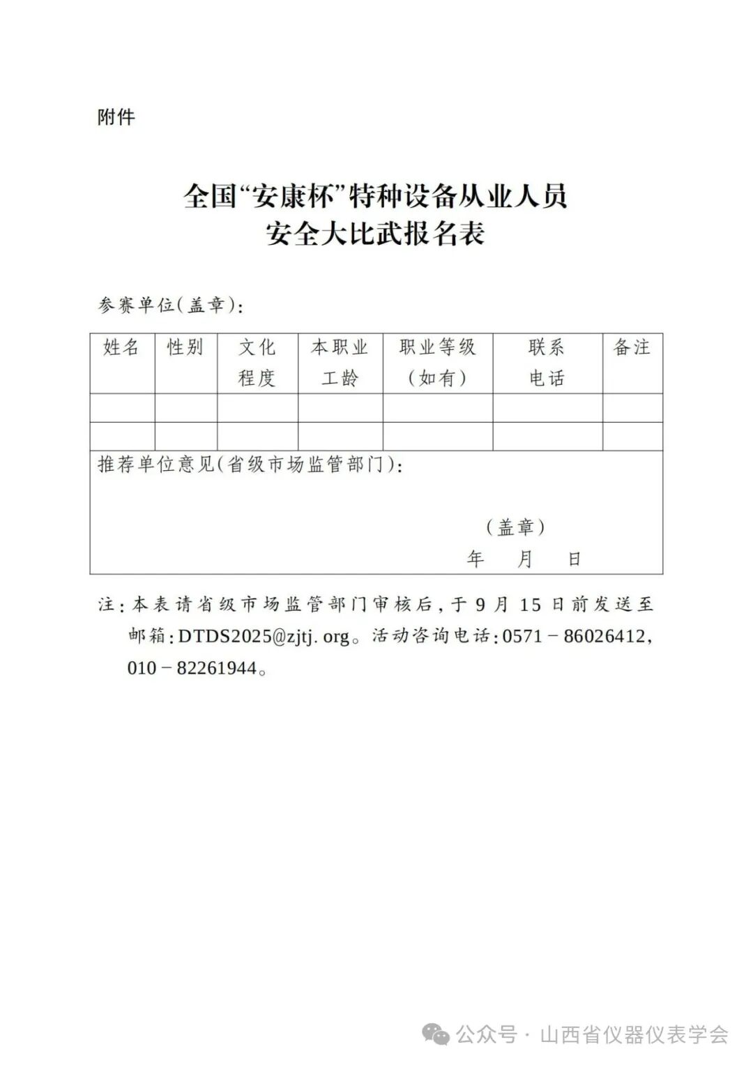 附件:全国“安康杯”特种设备从业人员安全大比武报名表