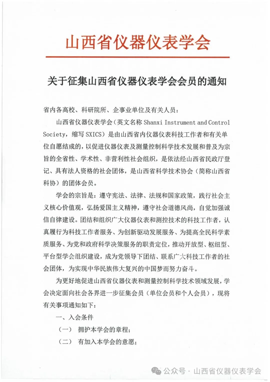 关于征集山西省仪器仪表学会会员的通知