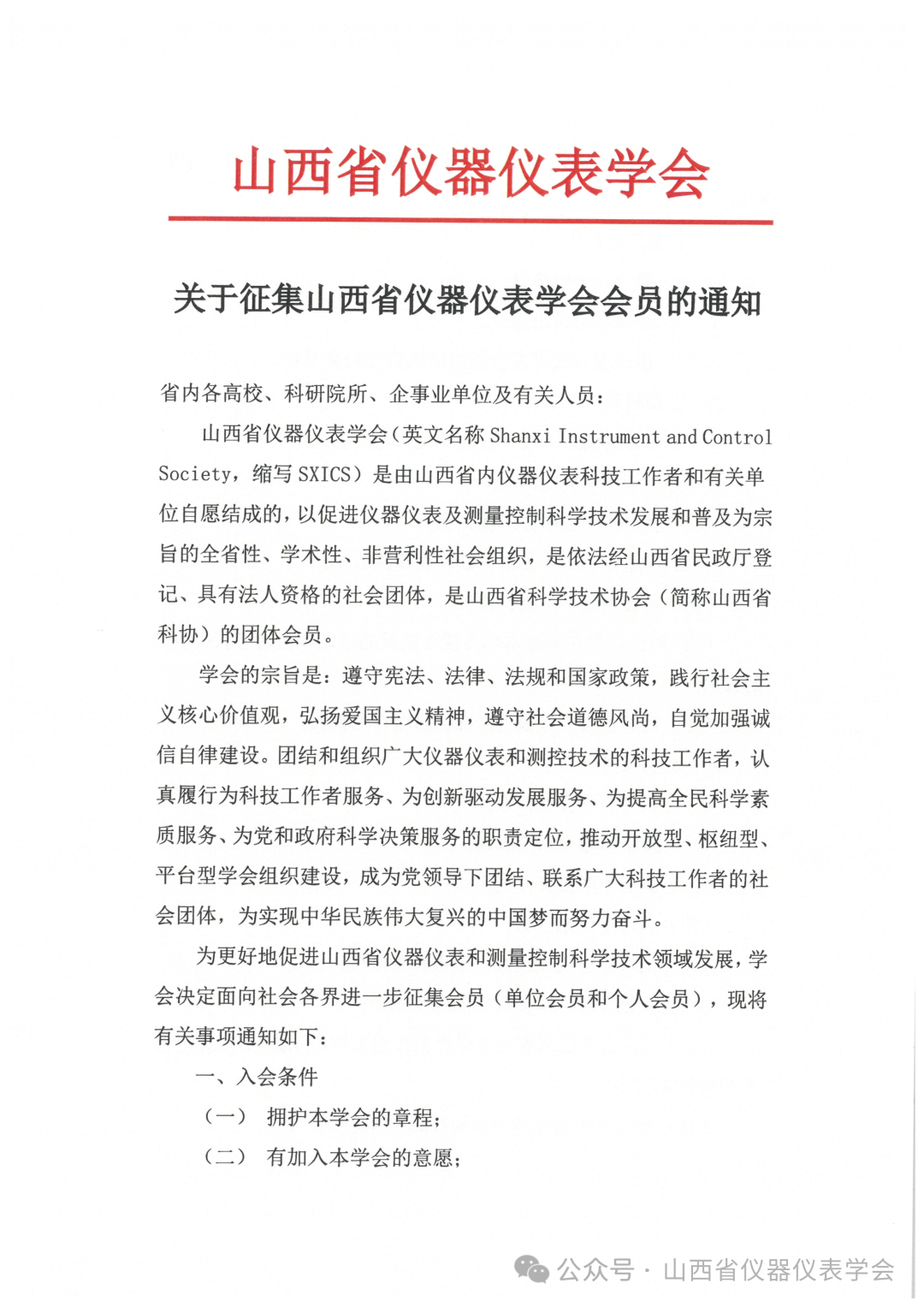 关于征集山西省仪器仪表学会会员的通知