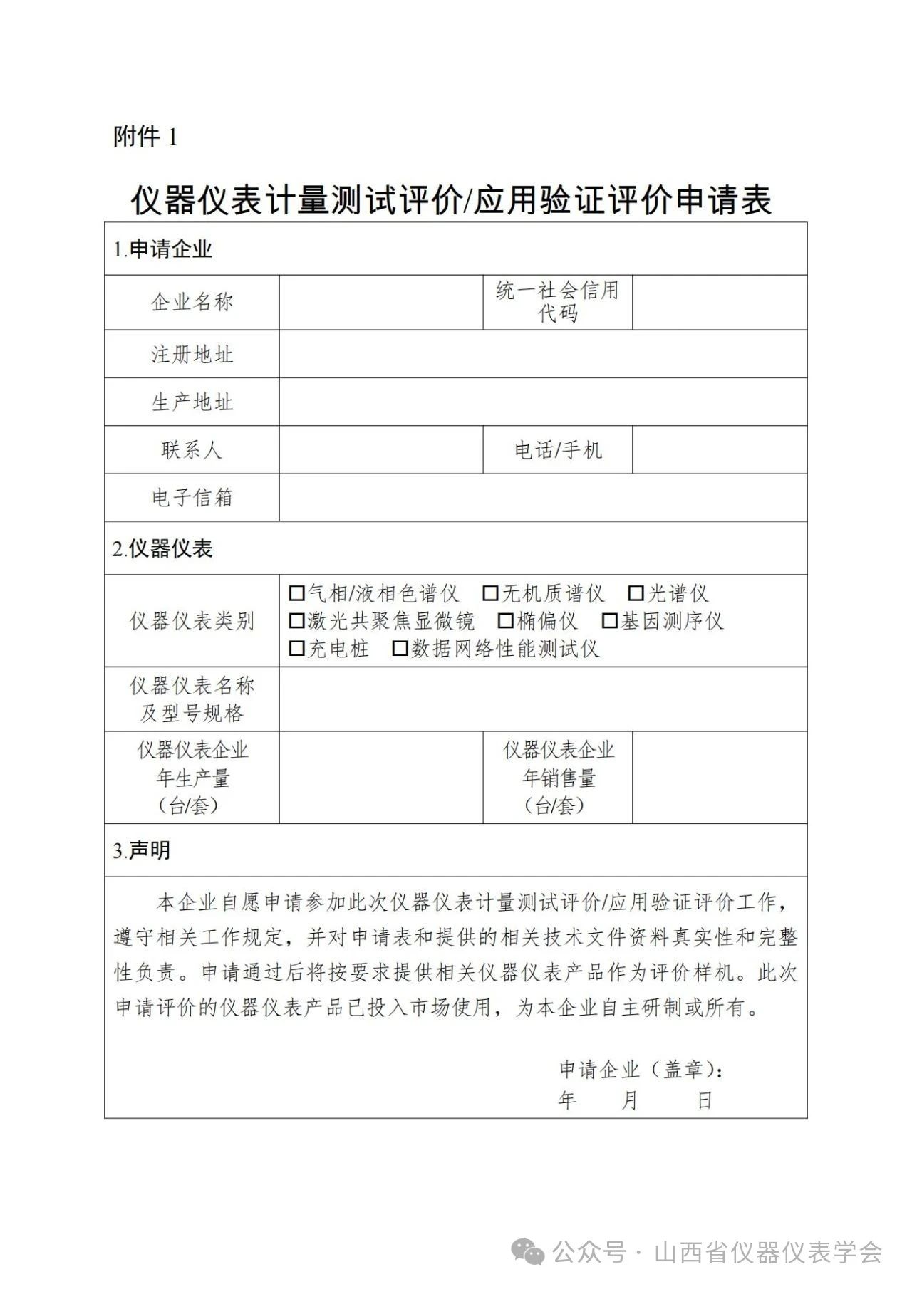 附件:1.仪器仪表计量测试评价/应用验证评价申请表